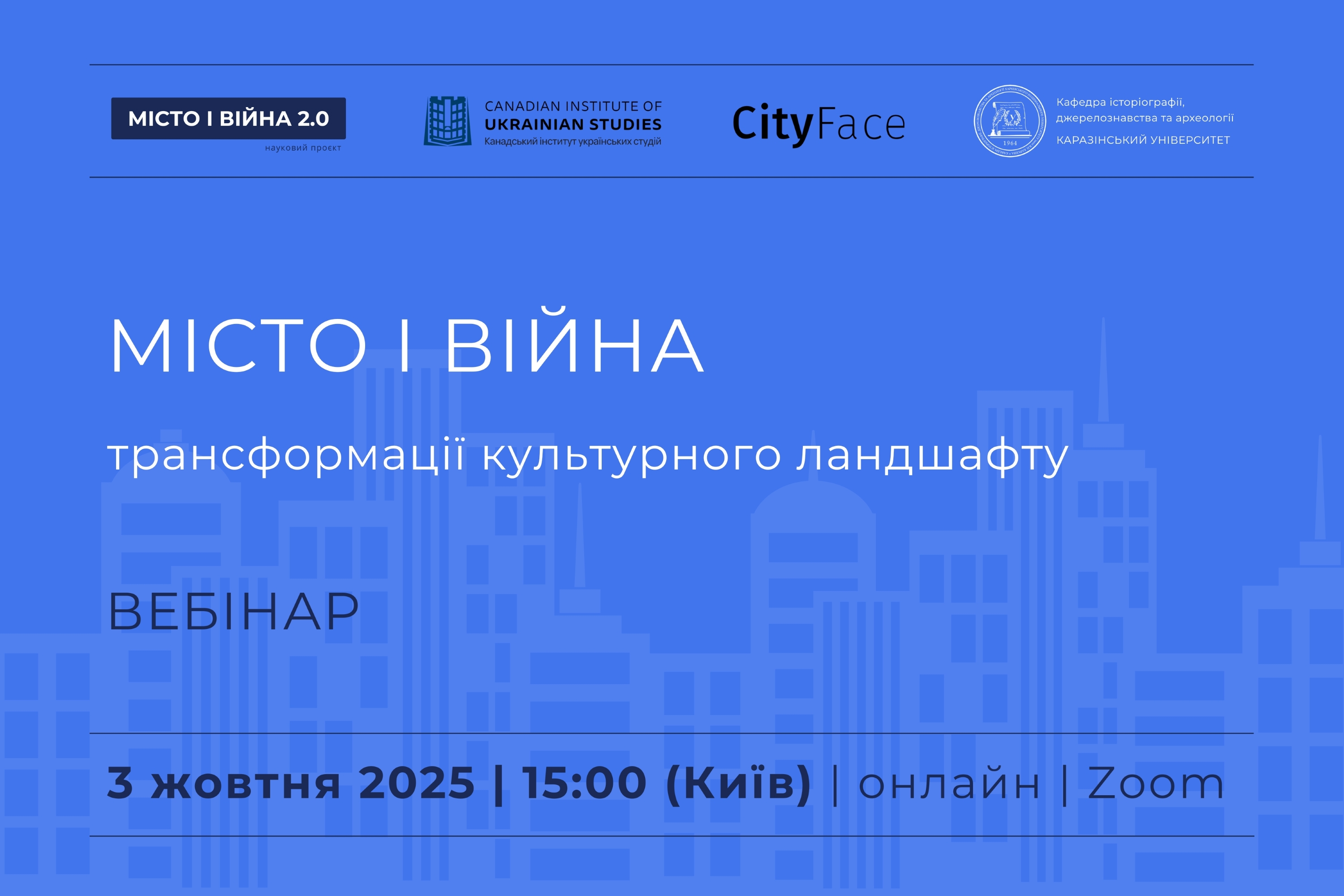 Проєкт “МІСТО І ВІЙНА 2.0” є продовженням наукових проєктів “МІСТО І ВІЙНА: Руйнування, збереження і переосмислення культурної спадщини великих міст Південно-Східної України в період російської військової агресії” (2022‒2024) та “CityFace: Практики саморепрезентації багатонаціональних міст в індустріальну і постіндустріальну добу” (2018‒2021).